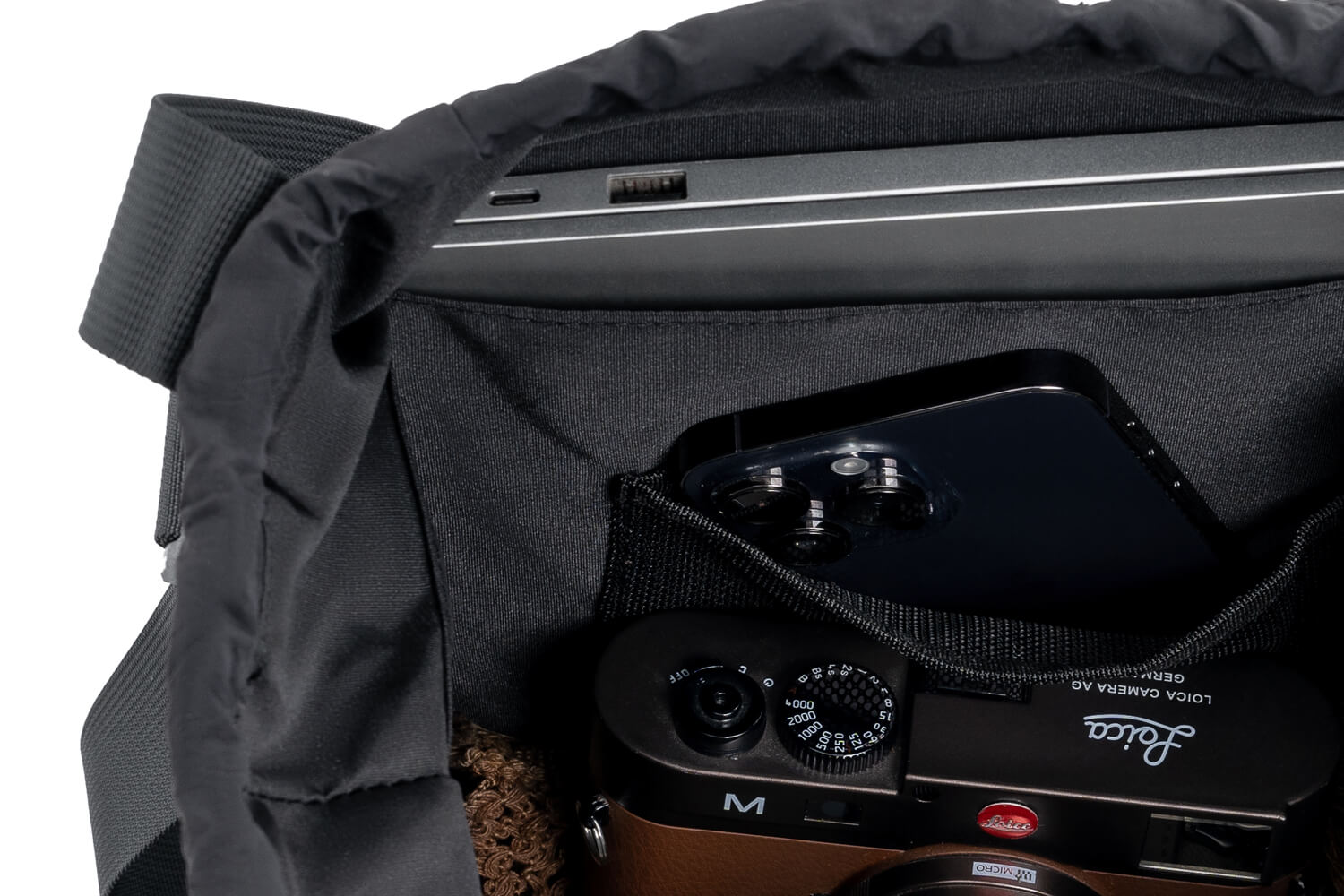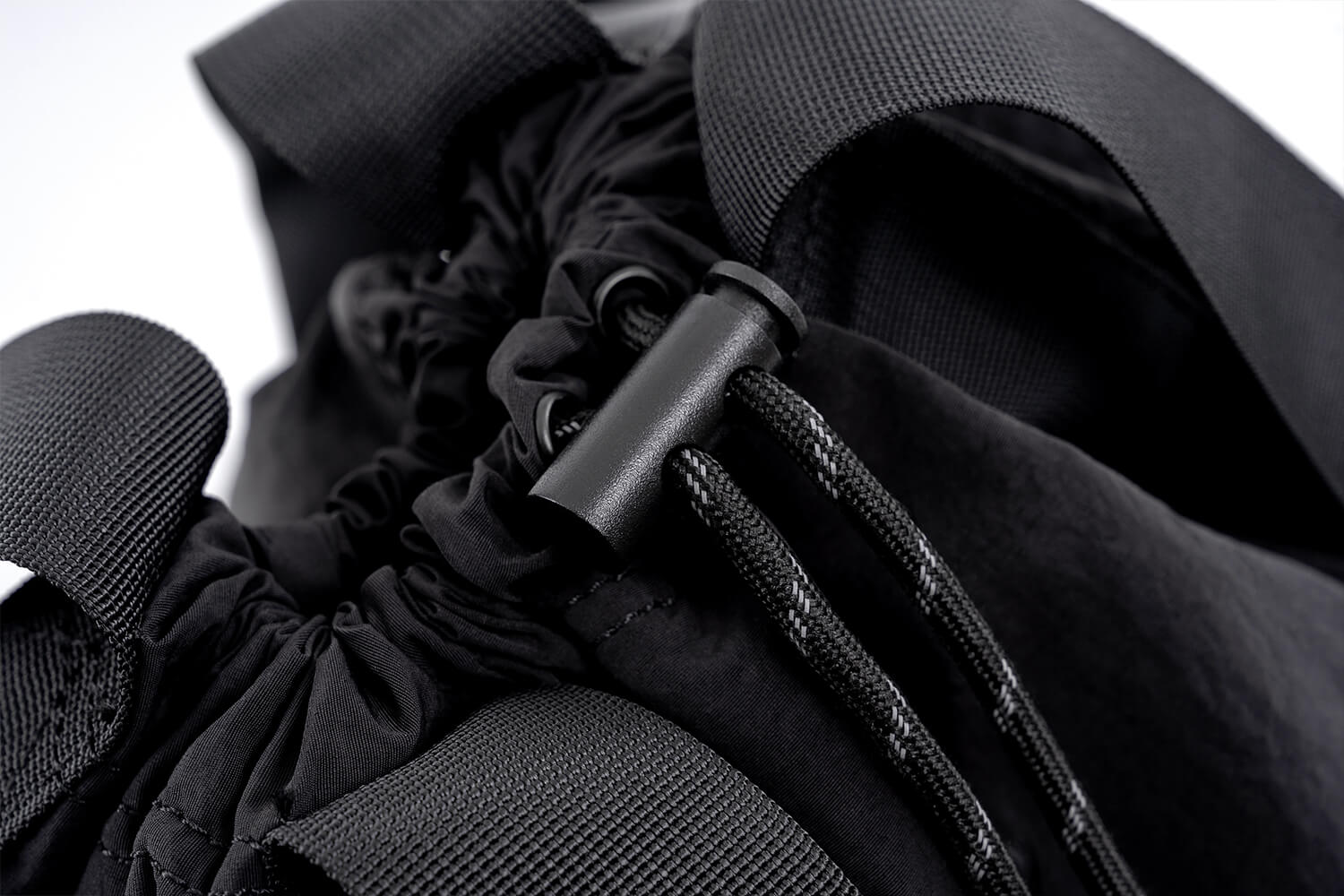 The reinforced metal hook is seamlessly integrated into the side seam, ensuring a stable and reliable connection point. Paired with a durable braided cord and ergonomic pull tab, this detail enhances both functionality and ease of use while maintaining a clean, minimalist appearance. Designed to withstand frequent use, it reflects our attention to durability, precision stitching, and refined finishing.
