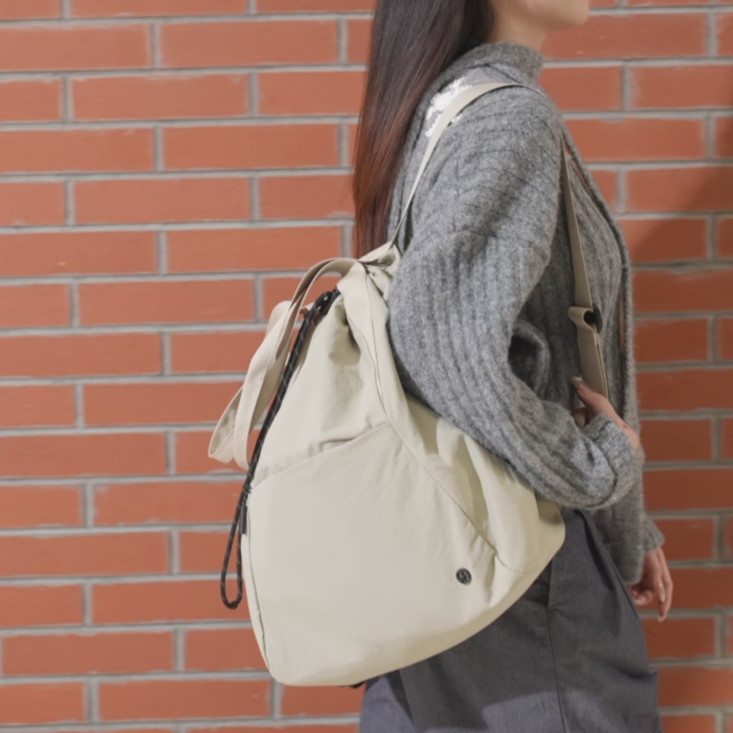Multiple carrying options, a clean and sleek silhouette design adds a touch of urban style to various outfits, suitable for lifestyle-oriented products.