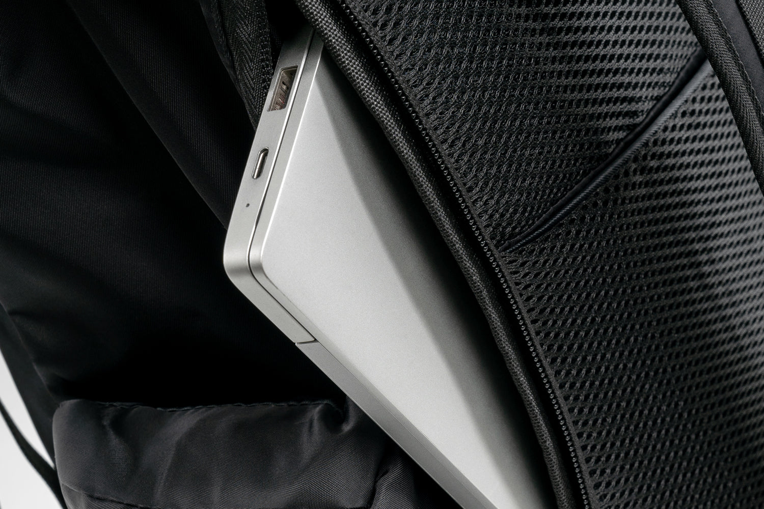 A padded interior sleeve provides secure protection for laptops and devices, while the breathable mesh panel enhances airflow and everyday carrying comfort.
